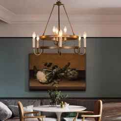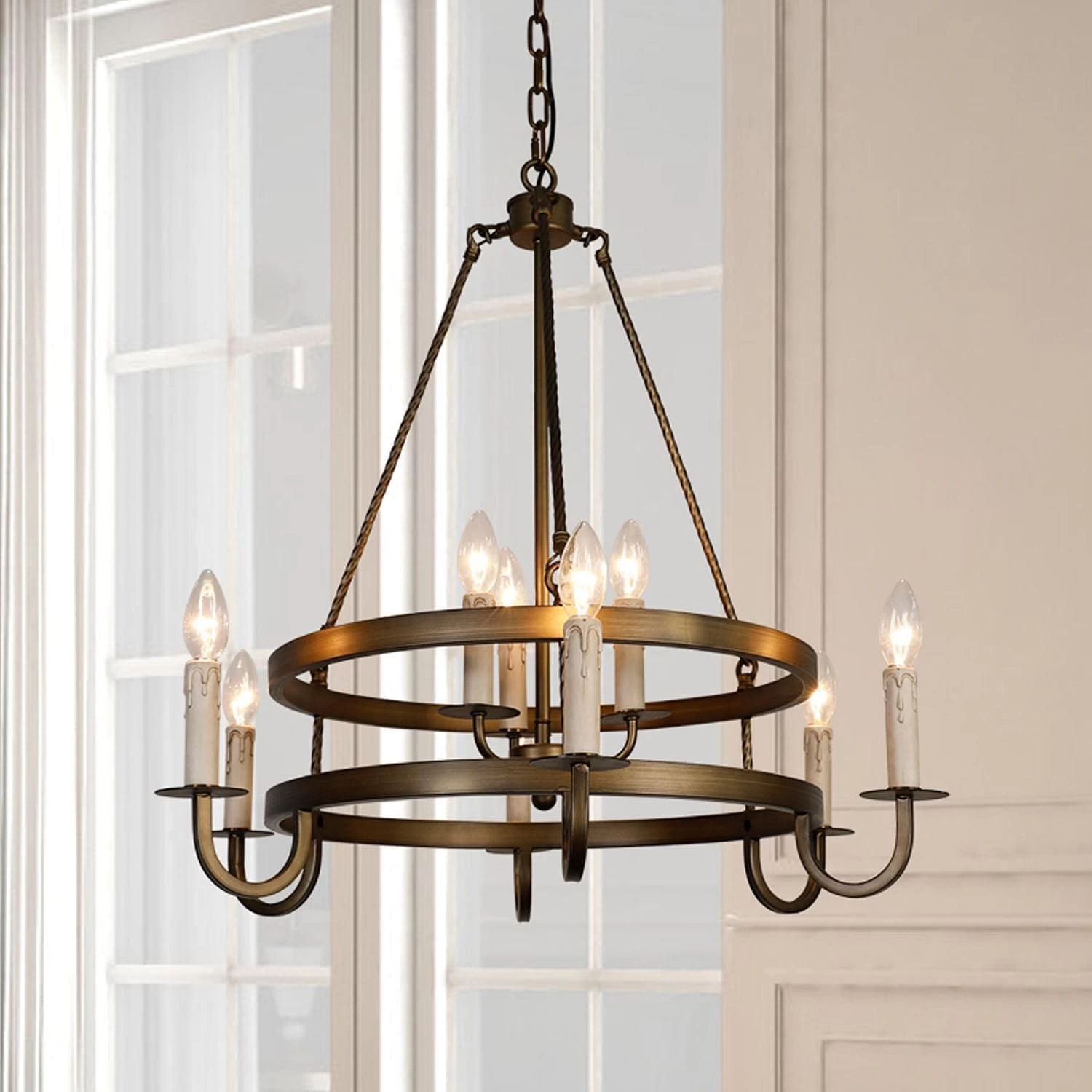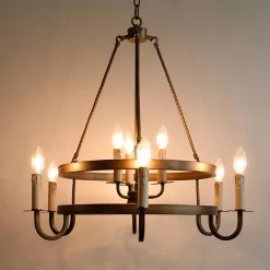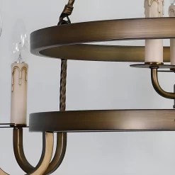 - 9 lights, Bronze Metal, Rustic Style, Candle Chandelier