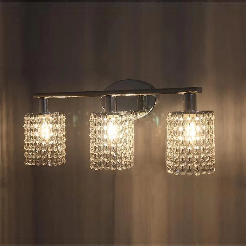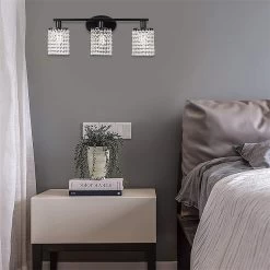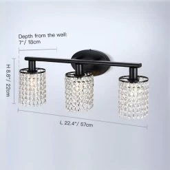 - curtains of clear crystals, Black finish, bathroom light