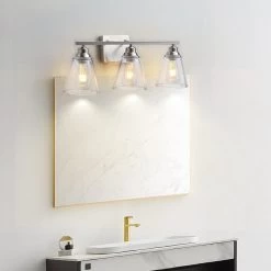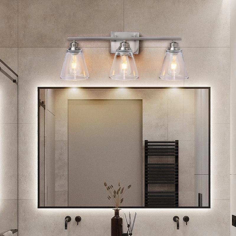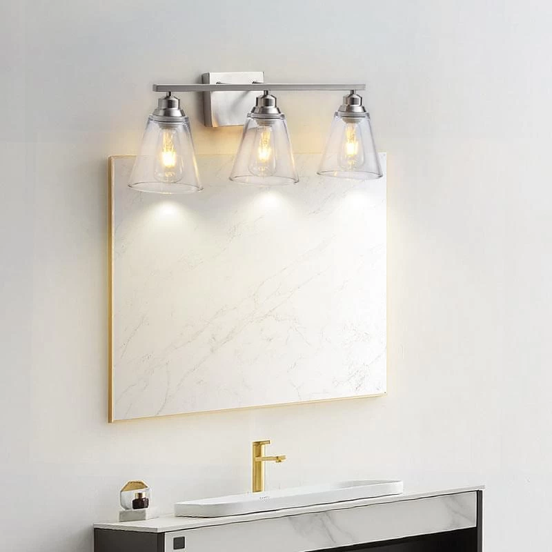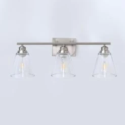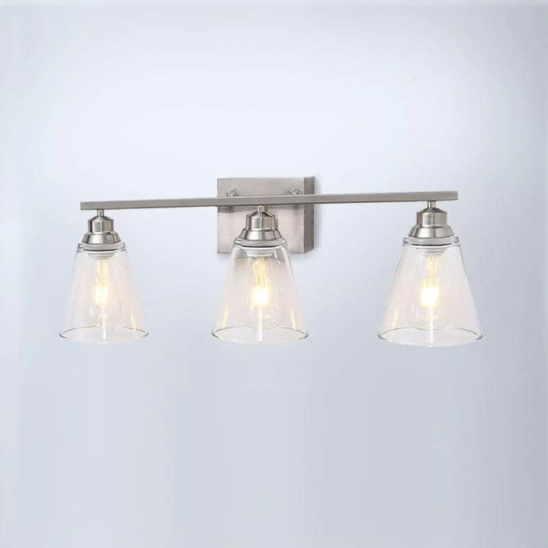 - nickel finish backplate, clear Crystal lampshade, bathroom light