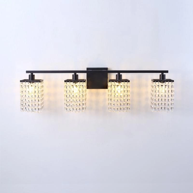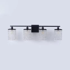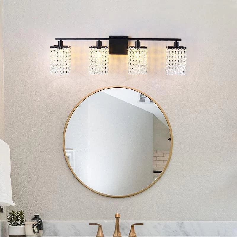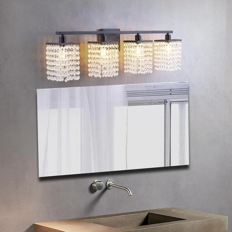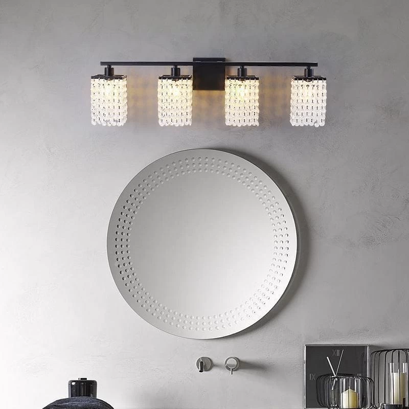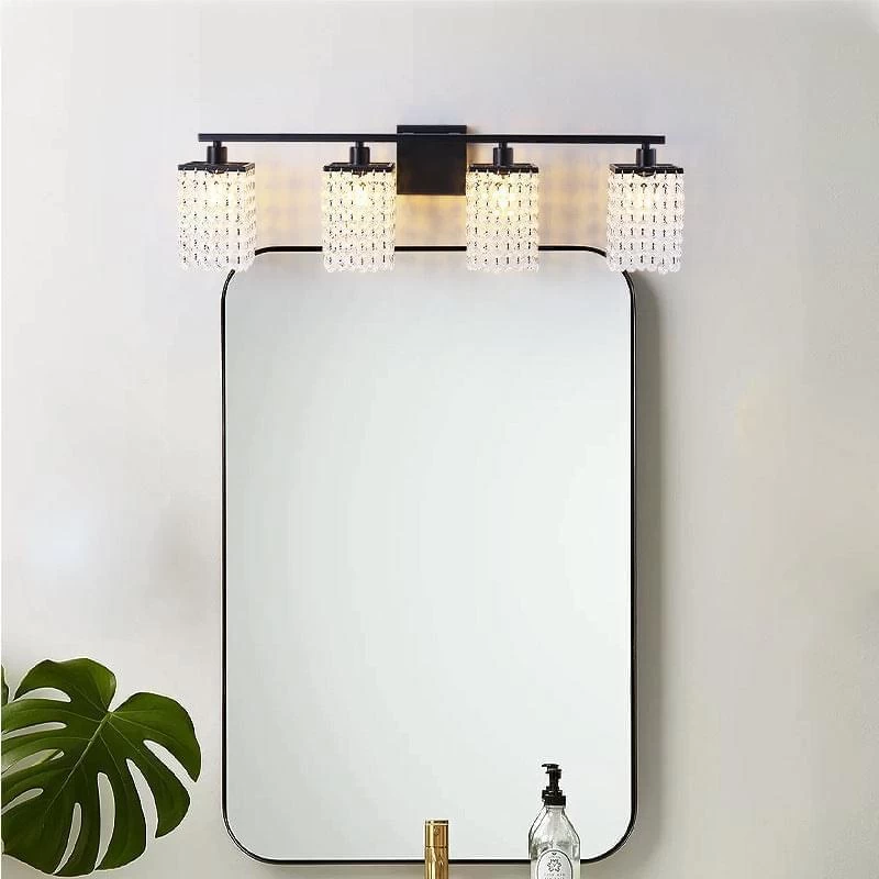 - Black finish backplate, Curtains Of Clear Crystals, bathroom light