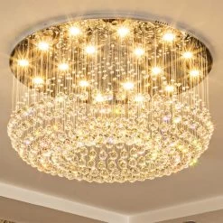 We advise you to use warm white bulbs to obtain a warm atmosphere, its lighting will be soft and not dazzling. Cool white bulbs are better keeping crystals reflecting light, which can help you to decorate a fantastic room. We default the light source in the picture, if you need other colors, please contact us.