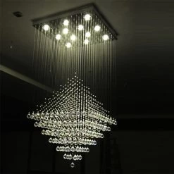 The Diamond Shape Crystal Chandelier is a modern and elegant addition to any home. This chandelier features a unique diamond-shaped crystal design that is sure to make a statement. Enjoy luxurious lighting, thanks to the shimmery effect of the crystal facets, a perfect backdrop for any room.