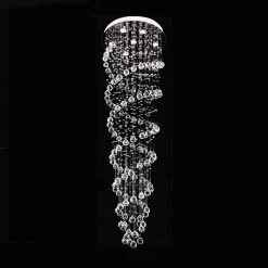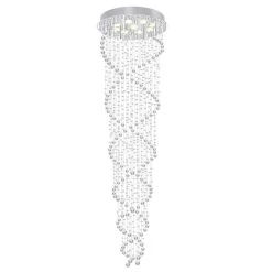 Our Double Spiral Modern Raindrop Chandelier features an elegant combination of modern and traditional design. Elegant double spiral arms are complemented by two tiers of clear crystal raindrops to transform any room into a luxurious and cozy atmosphere. With a maximum hanging length of 66.9 inches, this chandelier is perfect for grand hallways and staircases.