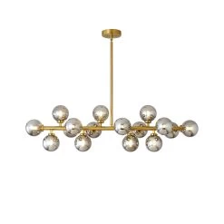 In the world of lighting, round or curved objects are known to emanate a calming sense of serenity. This is particularly true for glass globe chandeliers, which are a modern interpretation of the time-honored, classic chandelier. Globe chandeliers carry an elegance of their own while presenting a contemporary twist on traditional lighting. This particular piece features 16 individual frosted glass globes strategically distributed across a classy gold base rod. Each globe smoothly diffuse the LED light sources for an unmistakably high-end look, allowing light to spread beautifully across a room without the need for directional lighting.