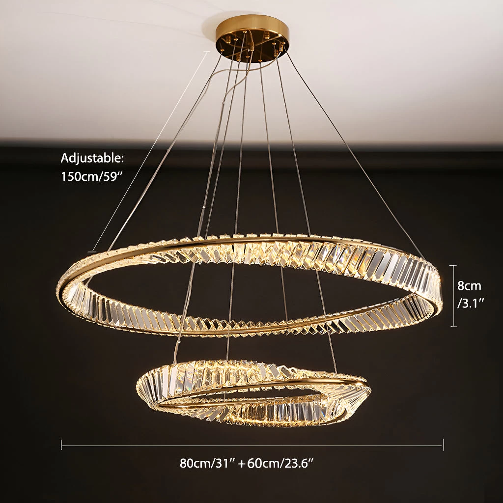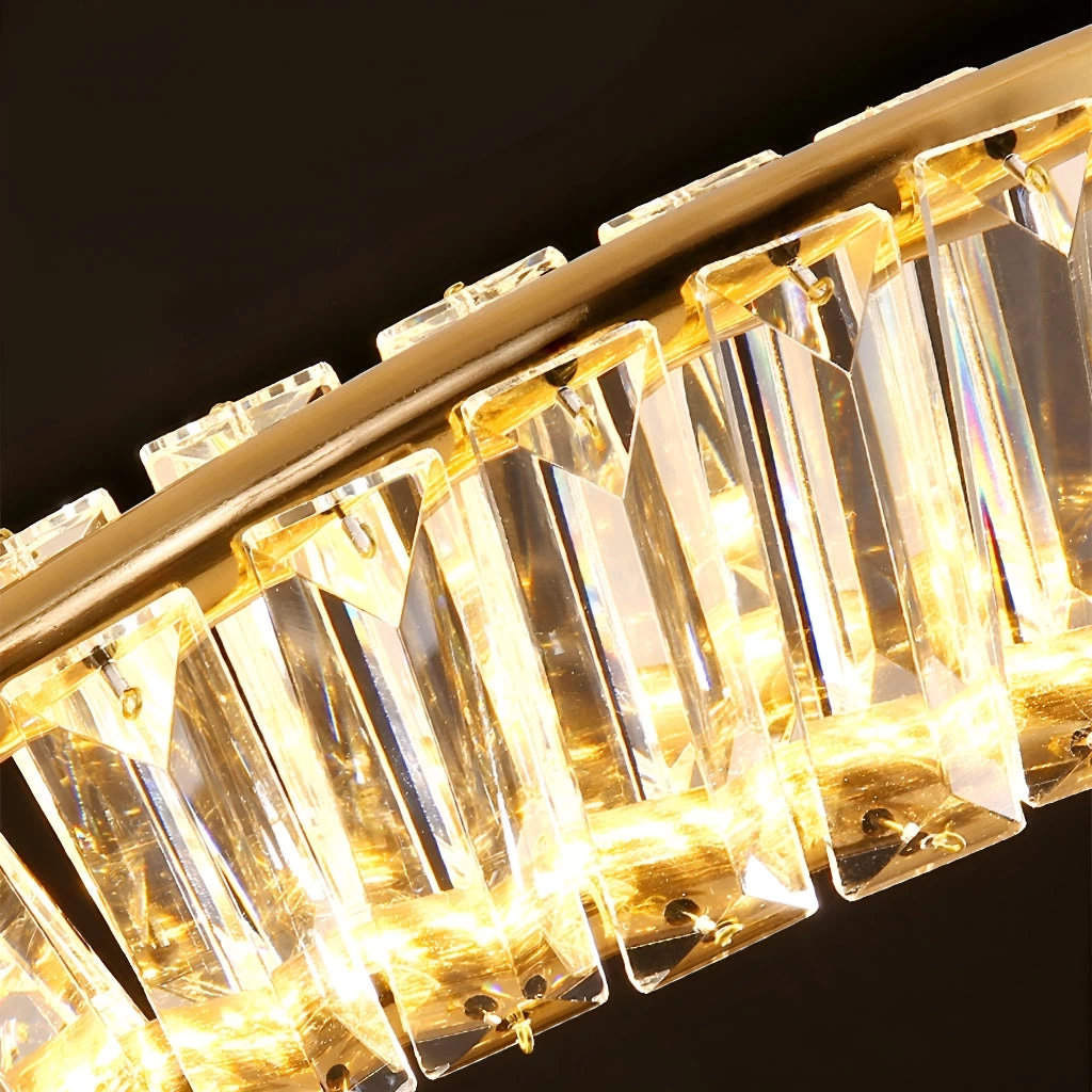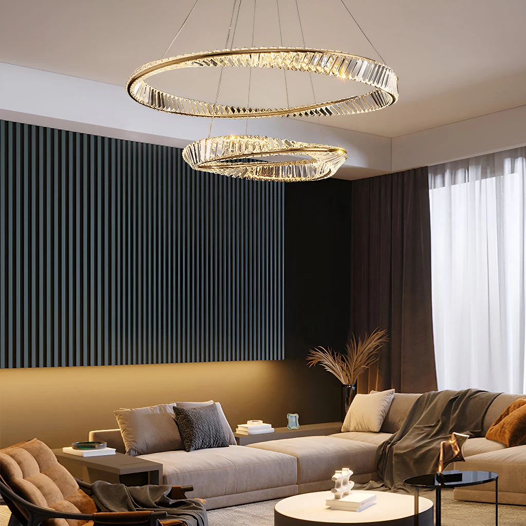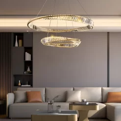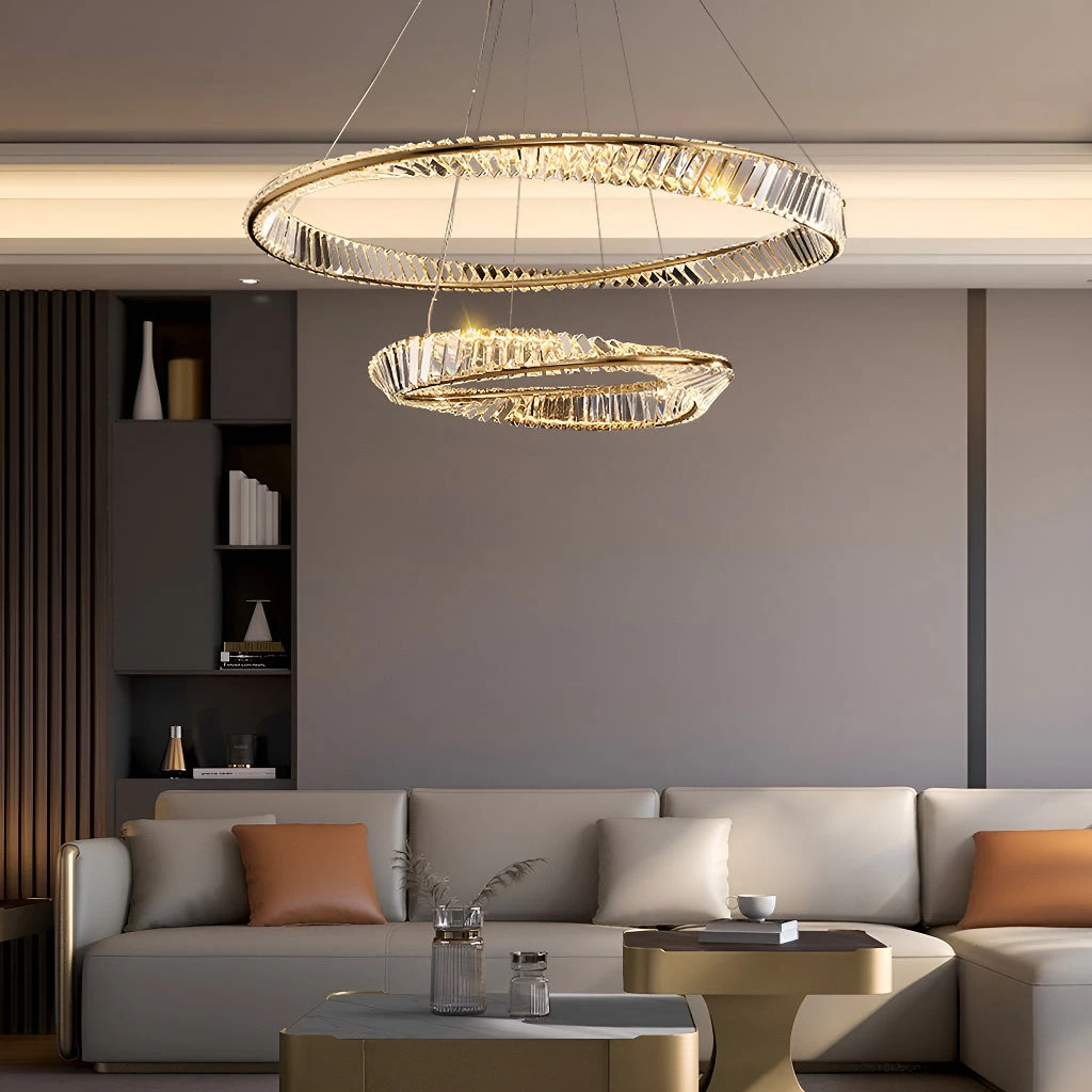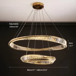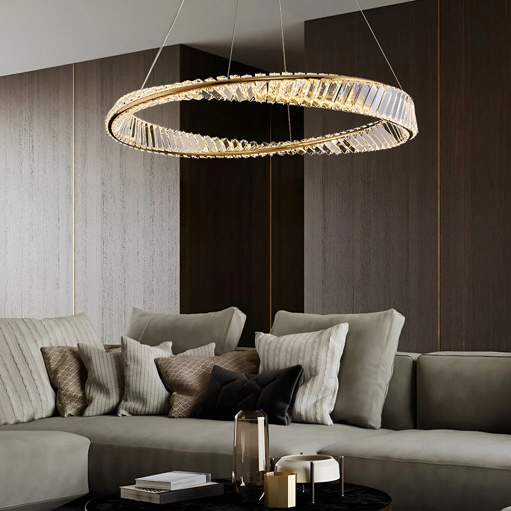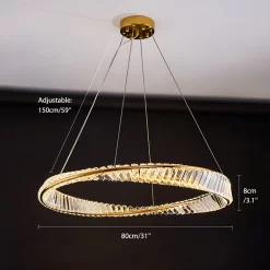 Sophisticated elegance radiates from this Gold Irregular Ring Crystal Pendant Led Lamp. The unique design adds a touch of modern luxury to any space. With its energy-efficient LED lighting, you’ll save money while creating a warm and inviting atmosphere. Elevate your home decor and mood with this stunning statement piece.