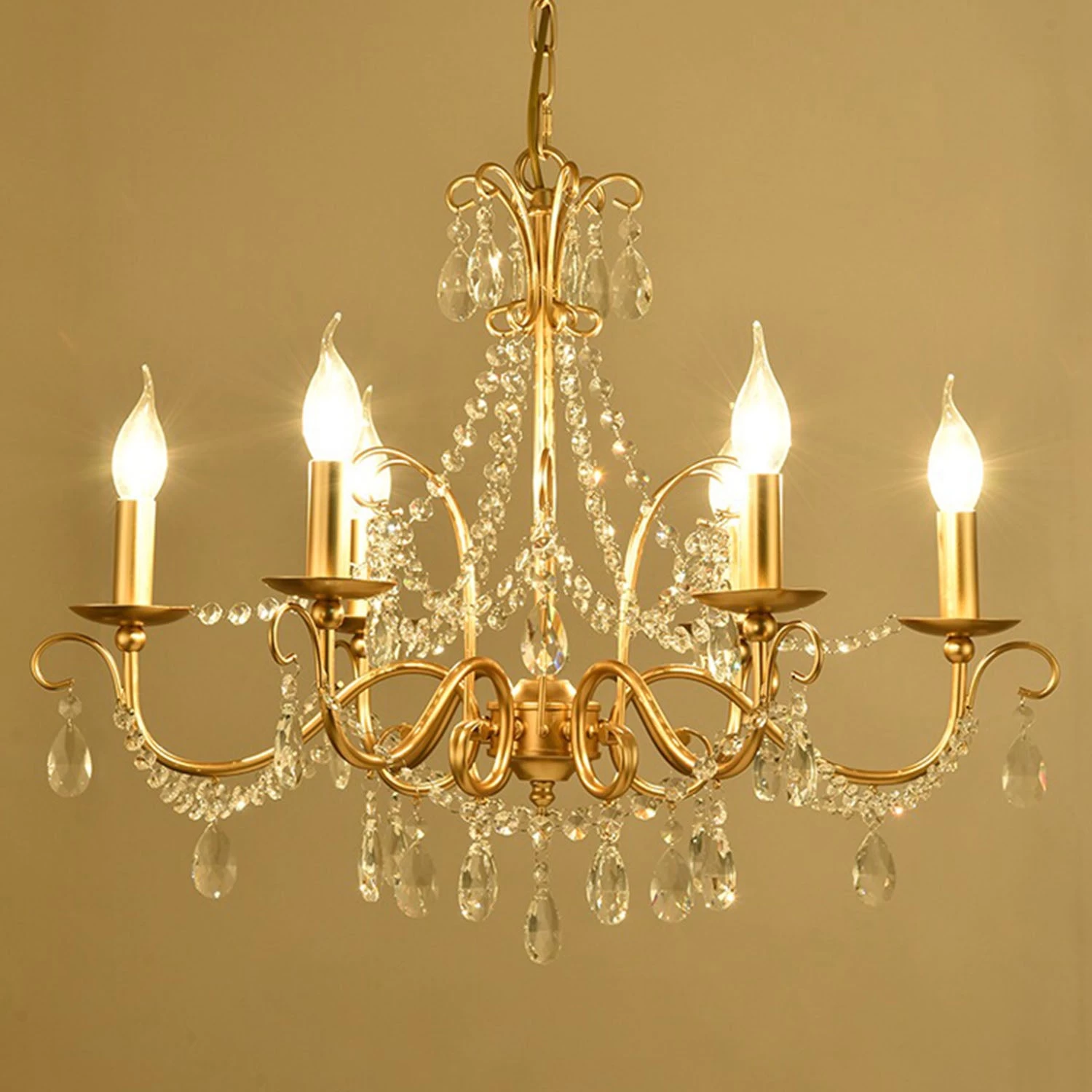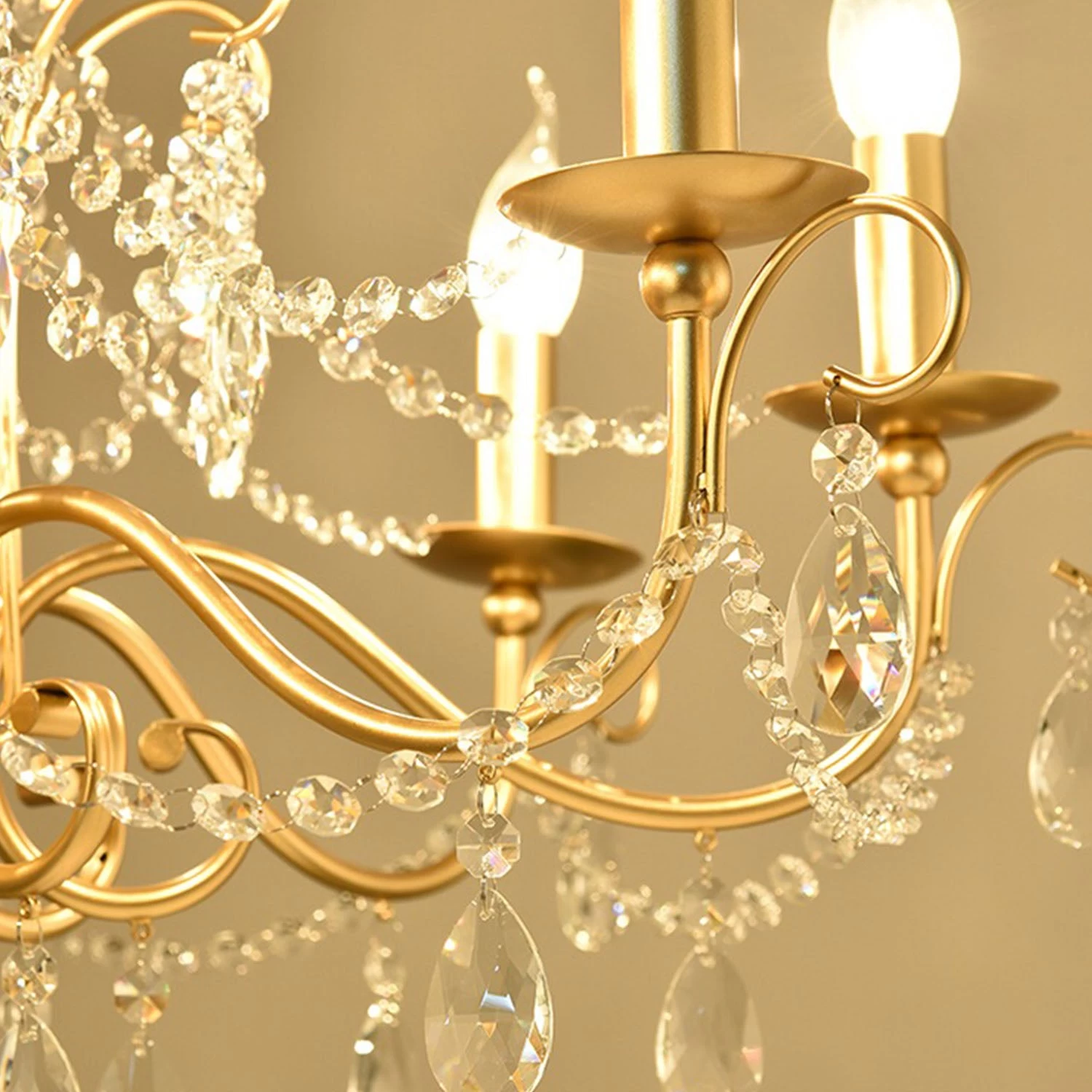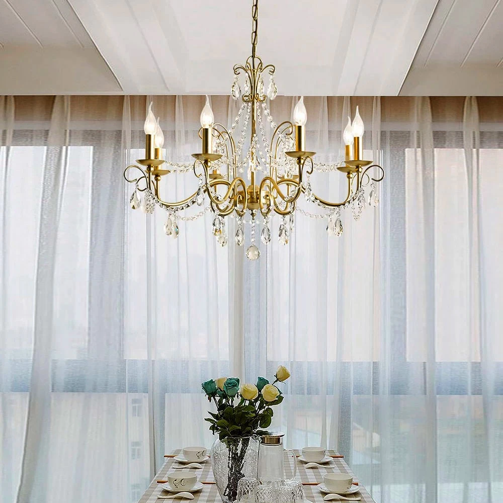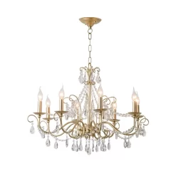 - Gold Finish Over Metal Frame, Clear K9 Crystals, Candle Chandelier