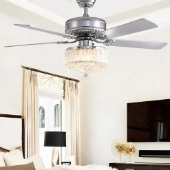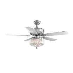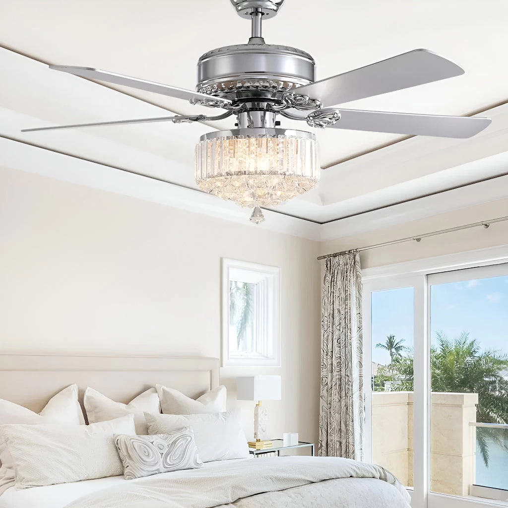 This sophisticated ceiling fan has 5 solid crystal blades and a remote control for ease of use. Add a touch of luxury to your home with this beautiful and efficient fan. Enjoy the perfect cooling breeze at the touch of a button.