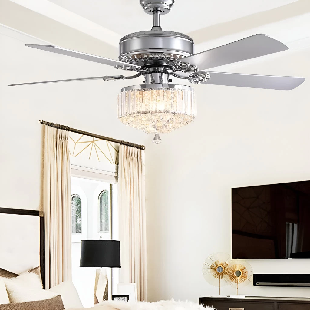 - Five chrome finish blades, K9 Crystal chandelier, Fandelier