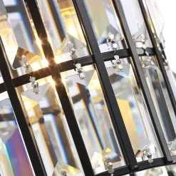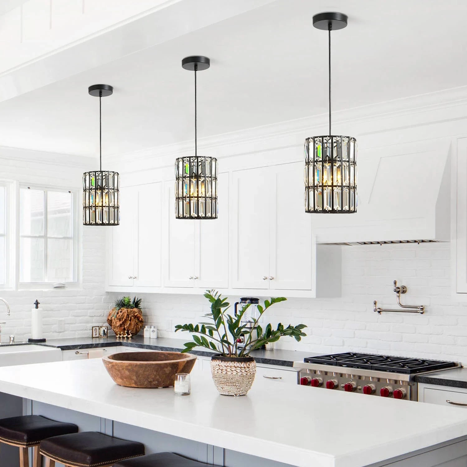 Strike the perfect balance between traditional and modern lighting elements with this Modern Creative Crystal Pendant Light. It features an eclectic blend of industrial and mid-century design, starting off with an array of clear, multi-faceted K9 crystals set within a neatly finished black metal frame. When lit, this piece playfully reflects and refracts light through the eye-catching, rectangular embellishments. A simple, no non-sense pendant light that is sure to take center stage as it hangs, preferably in multiples, over your living room, dining table, or kitchen island. Also looks excellent as a solo piece to dress up small corners.