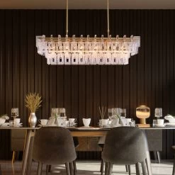 - Modern Crystal Chandelier, K9 Crystal with Black Base, Dining Room Pendant Light