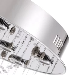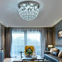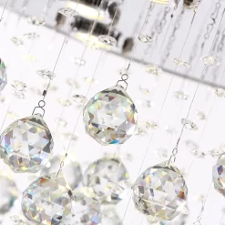 The Modern Flush Mount Fruit -Shaped Crystal Chandelier lures the eye closer with the frolic of crystals, reflection and warm light, with or without the lights on. The flush mount fixture boasts of suspended tiers of faceted glass crystals in a layered, bestrewn pattern. The overall composition blunts the glare from above and fills your space with reflected warmth as it transforms light into a pleasant, sparkling glow. A gorgeous display that extends a luxurious and appealing aura, it is ideal for bedrooms, living rooms or dining areas with medium to high ceilings.