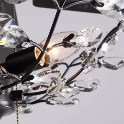 The Modern Flush Mount Fruit -Shaped Crystal Chandelier lures the eye closer with the frolic of crystals, reflection and warm light, with or without the lights on. The flush mount fixture boasts of suspended tiers of faceted glass crystals in a layered, bestrewn pattern. The overall composition blunts the glare from above and fills your space with reflected warmth as it transforms light into a pleasant, sparkling glow. A gorgeous display that extends a luxurious and appealing aura, it is ideal for bedrooms, living rooms or dining areas with medium to high ceilings.