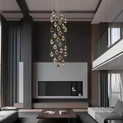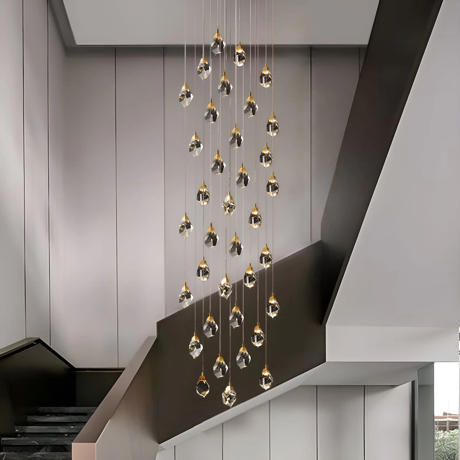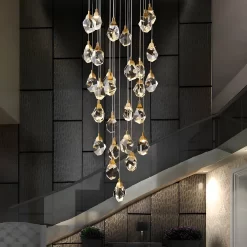 Elevate your living space with our New Modern Crystal LED Drop Chandelier. Perfect for stairs, duplex apartments, and living/dining rooms. This stylish chandelier adds a touch of elegance with its sleek design and energy-efficient LED lights. Transform your home and impress your guests today!