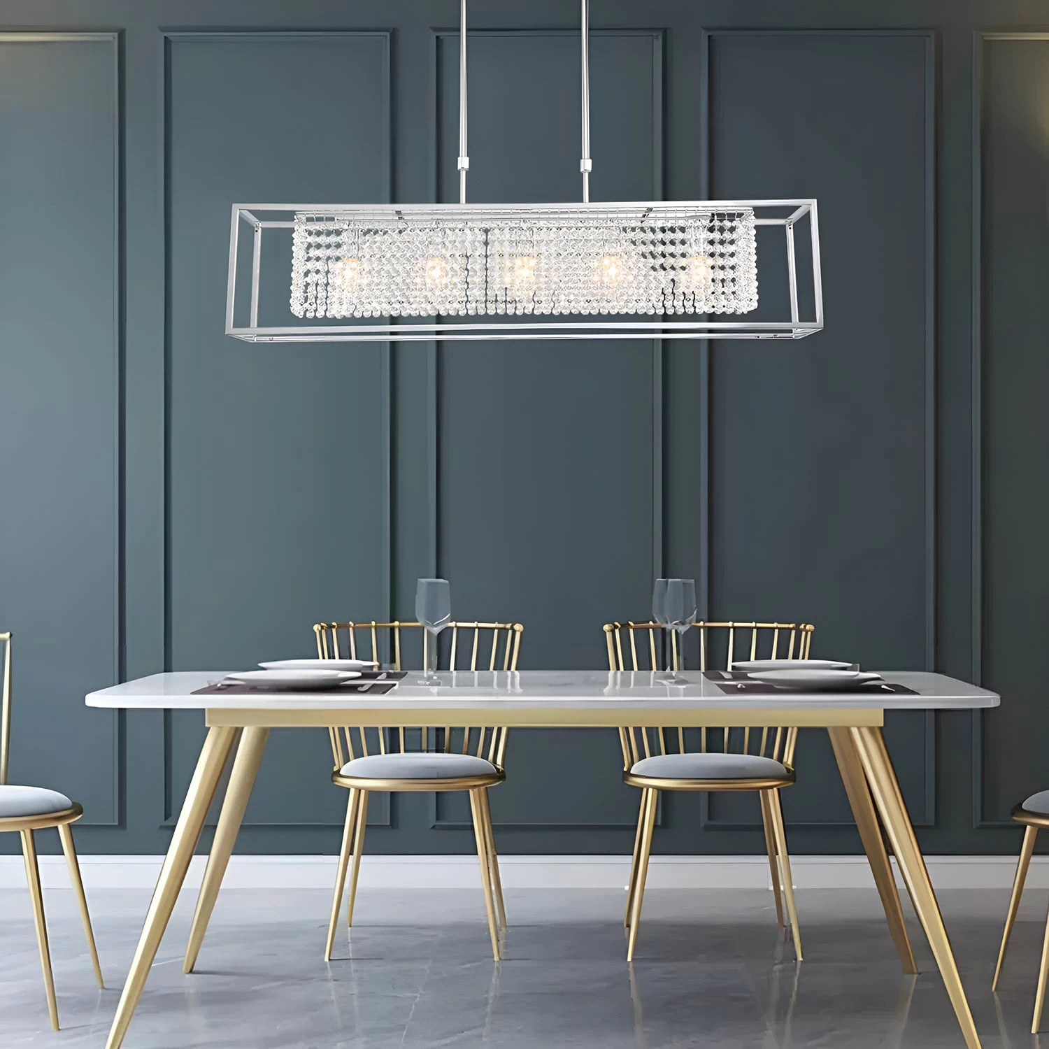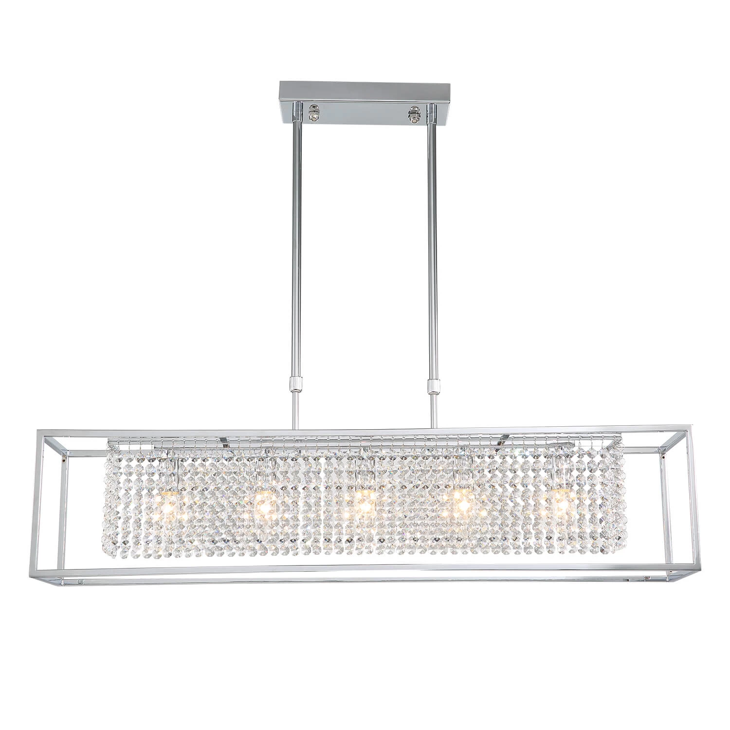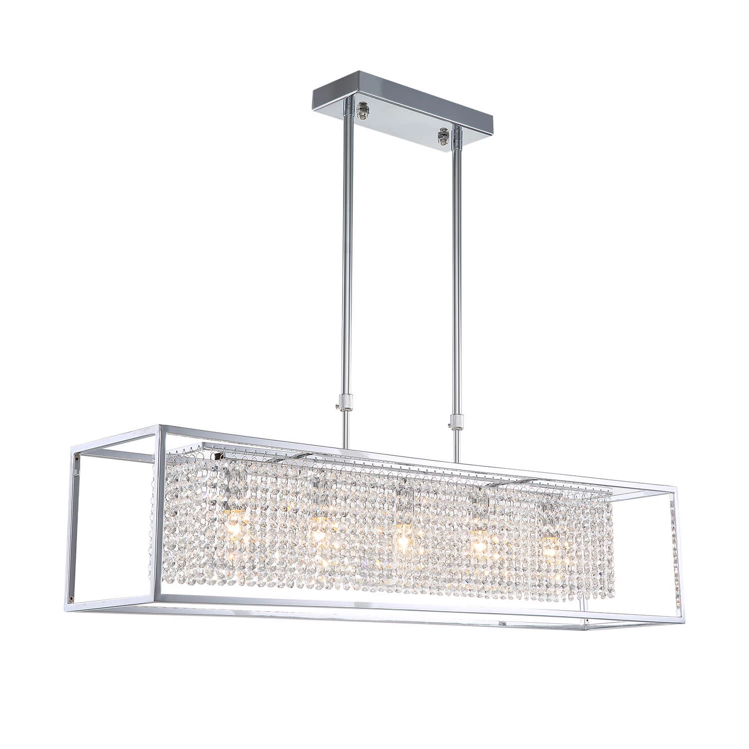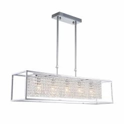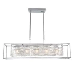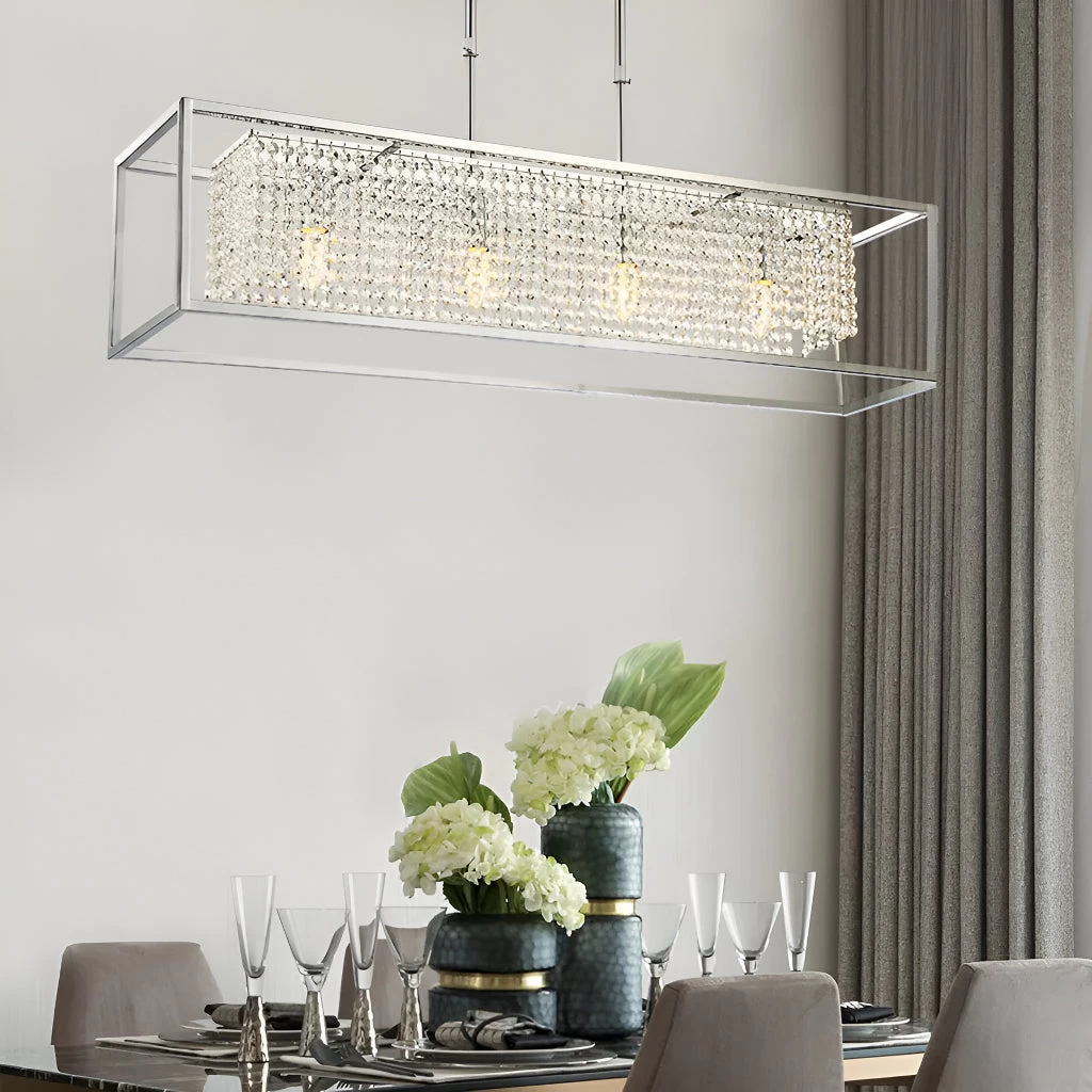- Modern Rectangular Chrome Frame Pendant Light, Dining Room Pendant Light