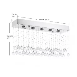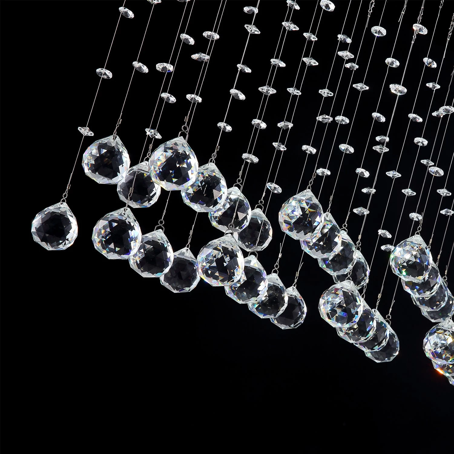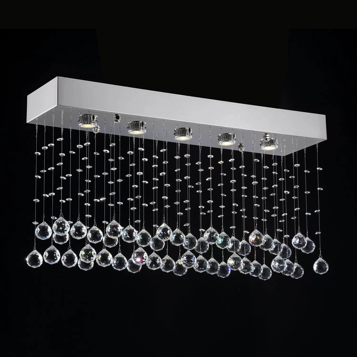 - Modern Rectangular Crystal Chandelier, K9 Crystal with Polished Chrome Base, Dining Room Chandelier