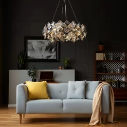 The 6-layer crystal folding luminaire is a stunning fixture that features multiple layers of hand-made, stereo diamond-shaped crystal blocks suspended from a premium metal frame. The cascading design creates a dynamic and playful effect, adding a touch of charm and elegance to any space. The crystal blocks produce a warm and opulent glow that’s perfect for lighting up your dining table, kitchen island, or living room. The fixture is designed with convenience in mind, featuring a twistable light bulb holder that allows for easy installation and direction adjustment. With its premium materials and weathered look, this luminaire is a perfect blend of natural and modern design.