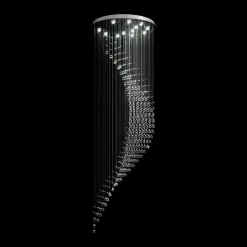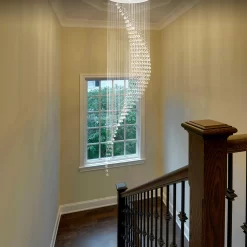 If you have a particular affinity for intricate silhouettes, you’ll surely love the effortless and flowing pattern created by this Moon Shaped Spiral Wave Raindrop Crystal Chandelier. Suspended from the ceiling by a circular canopy, this fixture boasts a generous cluster of raindrop-shaped glass beads in various sizes forming a downward spiral crescent pattern. The polished crystals lend their sparkle to the light source above to create an elegant and resplendent display. A stunning statement piece for chic spaces such as your foyer, entryway, staircase, or a living room with high ceilings.