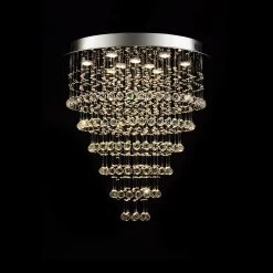 A dazzling crystal lighting fixture fit for both classic and contemporary spaces, this Multi-Layer Round Crystal Chandelier is sure to bring infinite brilliance to areas in your home with high ceilings. This piece is highlighted with an intricate weave of sparkling round crystal beads of different sizes dangling in three or six gradating tiers. When lit, the chandelier creates a cascading composition reminiscent of raindrops during a refreshing spring shower. Breathtaking and artfully crafted, this lighting solution is available in two sizes to add sparkle to your living room, dining room, or bedroom.