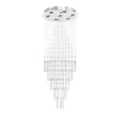 Shower high ceiling spaces in your home with the riveting highlights and radiant glow of the Floating Castle Round Raindrop Crystal Chandelier. Breathtakingly beautiful, this elegant and opulent piece is packed with the finest crystal elements for unmatched optics and warm, textured highlights. When lit, the sheer volume of reflections and refractions heighten the sense of drama and will surely draw the eye with its multi-tiered design. This luxurious and grand suspension fixture will make a stunning centerpiece for spacious living or dining rooms, entryways, foyers or staircases.