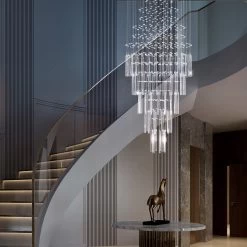 - Square Crystal Chandelier, Staircase Chandelier; Raindrop Chandelier