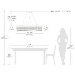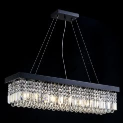 Make a bold and glamorous addition to your living space with an eye-catching rectangular crystal chandelier. Suspended by a set of down rods, this linear suspension light fixture comes with a series of sparkling, multi-faceted K9 crystals distributed evenly across a robust metal frame. Light sources nestled within enabling the design elements to come to life when lit, amplifying the brilliant effect of light shining through each crystal. It’s the ideal option to hang over a rectangular dining table or a kitchen island, especially if you prefer downward lighting coming from a single source for a dynamic and awe-inspiring ambiance.
