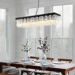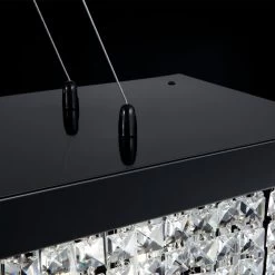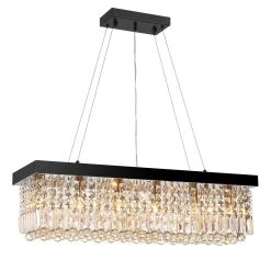 - Modern Rectangular Crystal Chandelier, K9 Crystal with Black Base, Dining Room Pendant Light