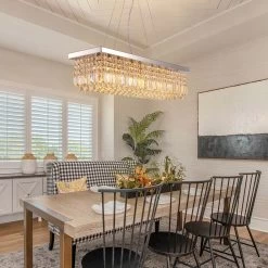 - Crystal Chandelier Dining Room, Rectangular Raindrop Crystal Chandelier, Crystal Pendant Light
