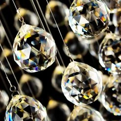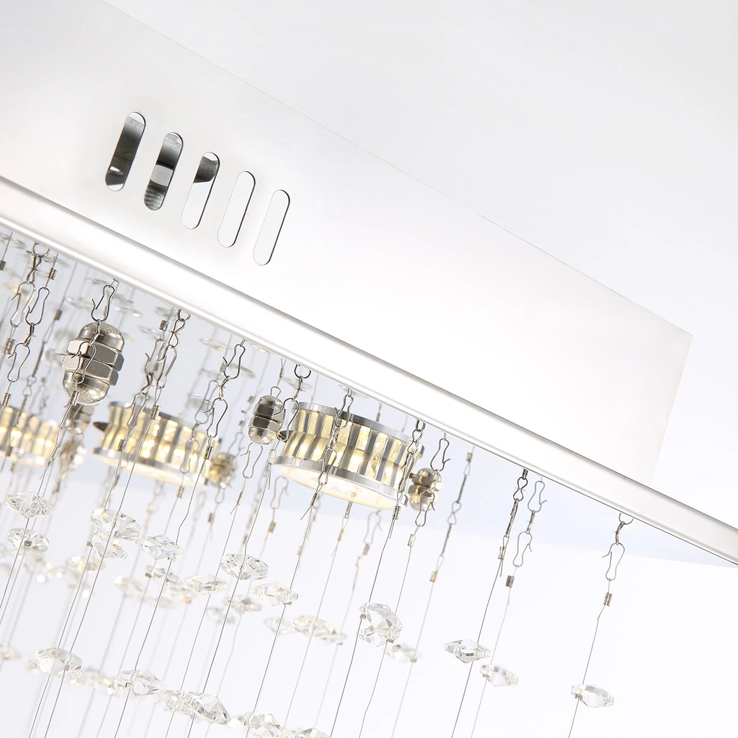 Modernize interior spaces with the state-of-the-art design and fine artisanal details of this multi-layer crystal chandelier. Featuring various sizes of cloud-shaped glass pieces delicately hung from a sturdy, rectangular base, this alluring lighting solution creates the illusion of floating glass for a decidedly whimsical feel. Light bounces off and out of each glass crystal in a sparkling, dazzling fashion to provide ambient and decorative illumination. This contemporary ceiling fixture will make a gleaming focal point for modern dining rooms, living rooms, or bedrooms and will also look stunning over sleek granite countertops and kitchen islands.