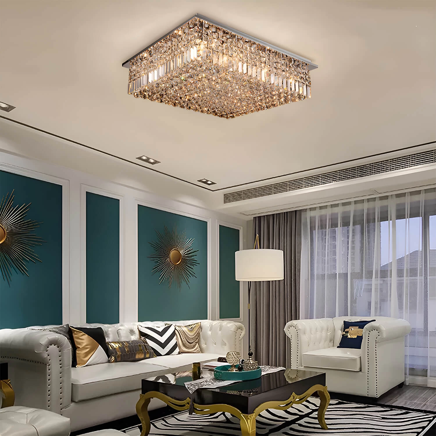 - Rectangular Crystal Ceiling Light, K9 Crystal, Raindrop Chandelier