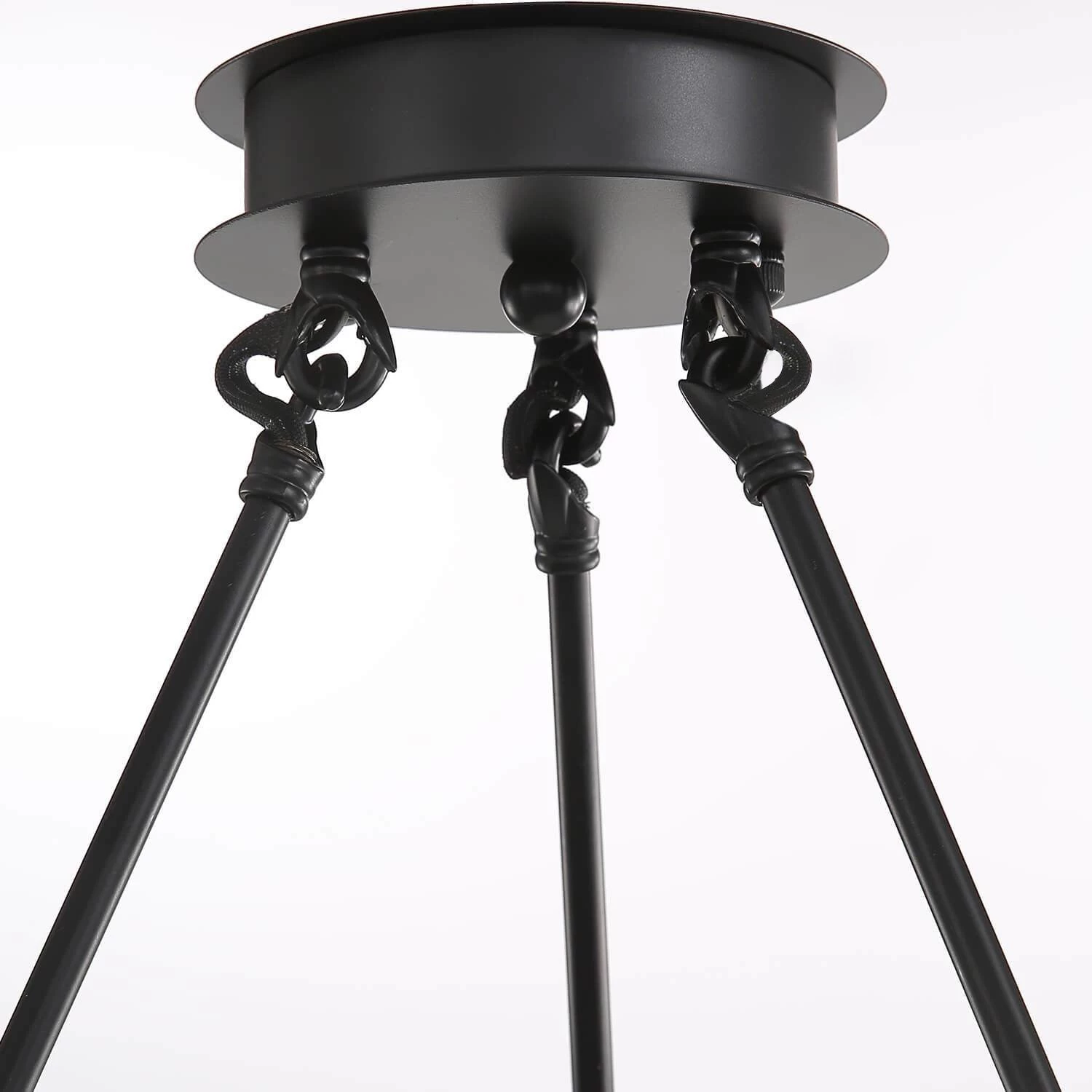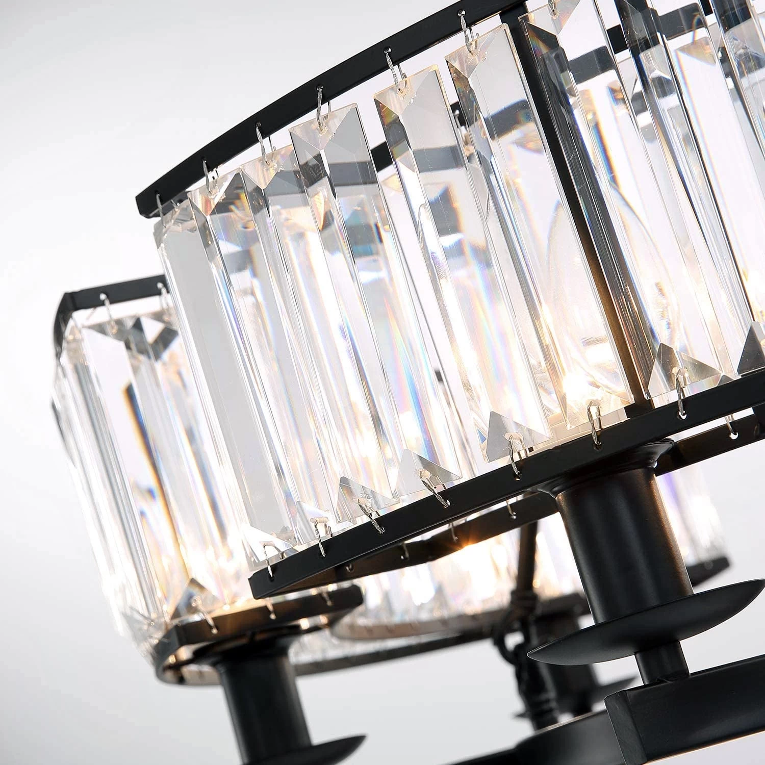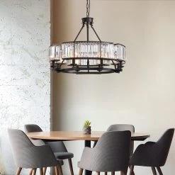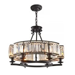 Blend vintage industrial style with a bit of contemporary flair, and you have this stunning rustic crystal chandelier that is sure to lend a truly unforgettable character to your indoor living space. Inspired by natural farmhouse components, the ingenious combination of matte black finish metals and brilliant K9 crystals generates a bucolic yet flamboyant retro atmosphere. Each crystal is precision-cut to reflect and refract light throughout the round wagon wheel structure. Hang this piece over your dining table, a kitchen corner or even your living room for a harmonious provincial feel. Â