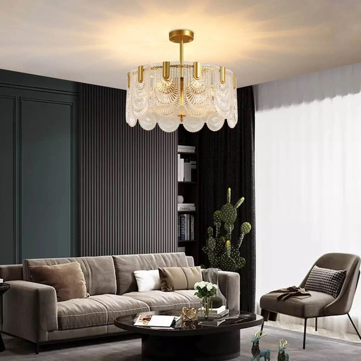 We advise you to use warm white bulbs to obtain a warm atmosphere, its lighting will be soft and not dazzling. Cool white bulbs are better keeping crystals reflecting light, which can help you to decorate a fantastic room. We default the light source in the picture, if you need other colors, please contact us.