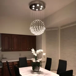Bring a touch of luxury to your dining room with the Sphere Raindrop Crystal Chandelier Ceiling Lights. Crafted from an intricate combination of high-quality crystals, this chandelier adds elegance to any space. The warm, ambient glow creates a beautiful atmosphere that will leave your guests in awe.
