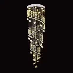 Incorporate a dose of galactic charm into your home lighting with this Spiral Meteor Shower Crystal Raindrop Chandelier. The thrilling spiral pattern of sparkling glass beads plus glittering starburst crystals will transform your staircase, foyer or entryway into a captivating cosmos of light. The extravagant cluster of stars floating in mid-air generates a heavenly display that will never fail to catch anyone’s attention. Things get even better when this fixture is lit—it will never fail to amaze every guest that walks into your home with its spectacular stellar display of radiant and sparkling luminosity.Â