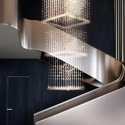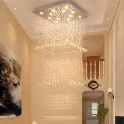 - Square Crystal Chandelier, Staircase Chandelier; Raindrop Chandelier