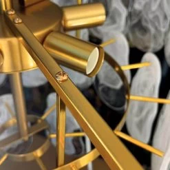 This pendant light showcases a stunning cascading design of hand-strung geometric cloud glass suspended from a premium metal frame. The high-quality materials used in its construction give it a natural, weathered look that’s perfect for modern interiors. When lit, the clouded glass produces a warm and opulent glow, creating a serene ambiance that’s ideal for your dining table, kitchen island, or living room. The playful element of the glass design is accentuated by the charming effect it creates when hit by a gust of wind.
